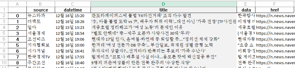 필요한 부분을 크롤링하여 xlsx로 저장된 파일