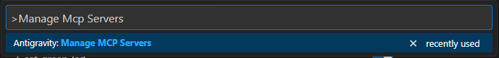 프로그램 등록 여부는 Antigravity: Manage MCP Servers 명령으로 확인할 수 있다.